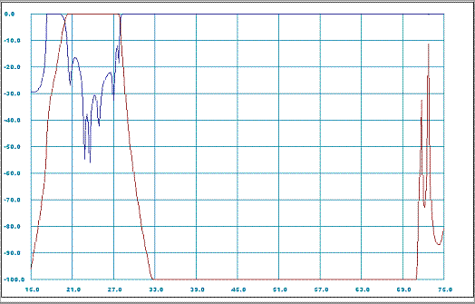 According to the article [4] this is a Ka-band filter with pass-band from about 21-28 GHz and stop-band extending up to 70 GHz.