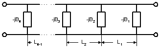 The next step is to calculate susceptances of the equivalent waveguide distributed network where the susceptances are connected to each other using waveguide sections. Therefore make sure the waveguide dispersion is taken into account. The B-values are depended on the filter bandwidth. The length of each cavity is calculated from B-values. See Collin’s book for details. |