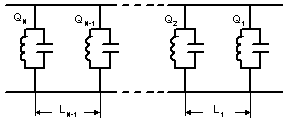 The filter can be represented as sequence of N lossless reactive resonant units separated by N-1 straight uniform waveguide sections of length close to 1/4-wavelength in the waveguide. Each resonator # i shows symmetric scattering matrix Si (b) with reflection function Ri (b) and transmission function Ti (b) , where b is waveguide propagation constant.
