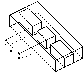 Physical realization of such a filter is based on finding such elements providing reflection zero at particular central frequency with variable Q-factor. Resonant iris and cavity of two regular H- plane irises [1] are commonly used to compose a 1/4-wave-coupled filter. Using modern software a wide variety of such resonant elements can be found and unusual filter structures can be built from them. For example, couple of slots in an evanescent-mode ridged waveguide behaves as reflection-zero resonator. Changing d-dimension changes central frequency and changing s-dimension changes Q-factor.