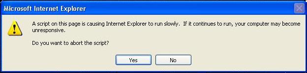Figure 7: A warning note may appear. The note warns that during simulation time [if it is more than couple of seconds] Internet Explorer may become unresponsive [will not act other events like mouse clicking, windows switching, resizing, etc.]. Click [Yes], if you want cancel simulations. Click [No] if you want to continue simulation. If you run simulations, please do not try to execute other commands or events until all computations are completed.
