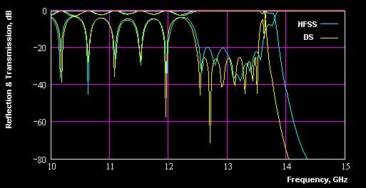 Figure 20: Frequency response simulated by HFSS and Design Studio