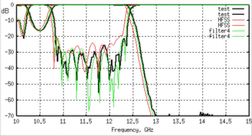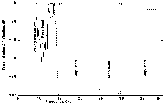 Figure 7: Frequency response of a corrugated filter over WR75