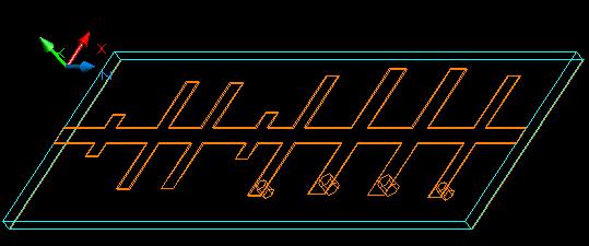 Figure 1: Alumina substrate based microstrip filter (3D model)